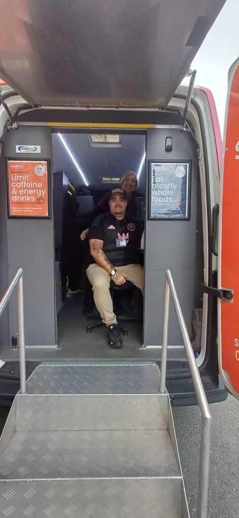 The Stroke Aotearoa Health Van was stationed on Spey Street offering free blood pressure checks and Atrial fibrillation (AF) checks.